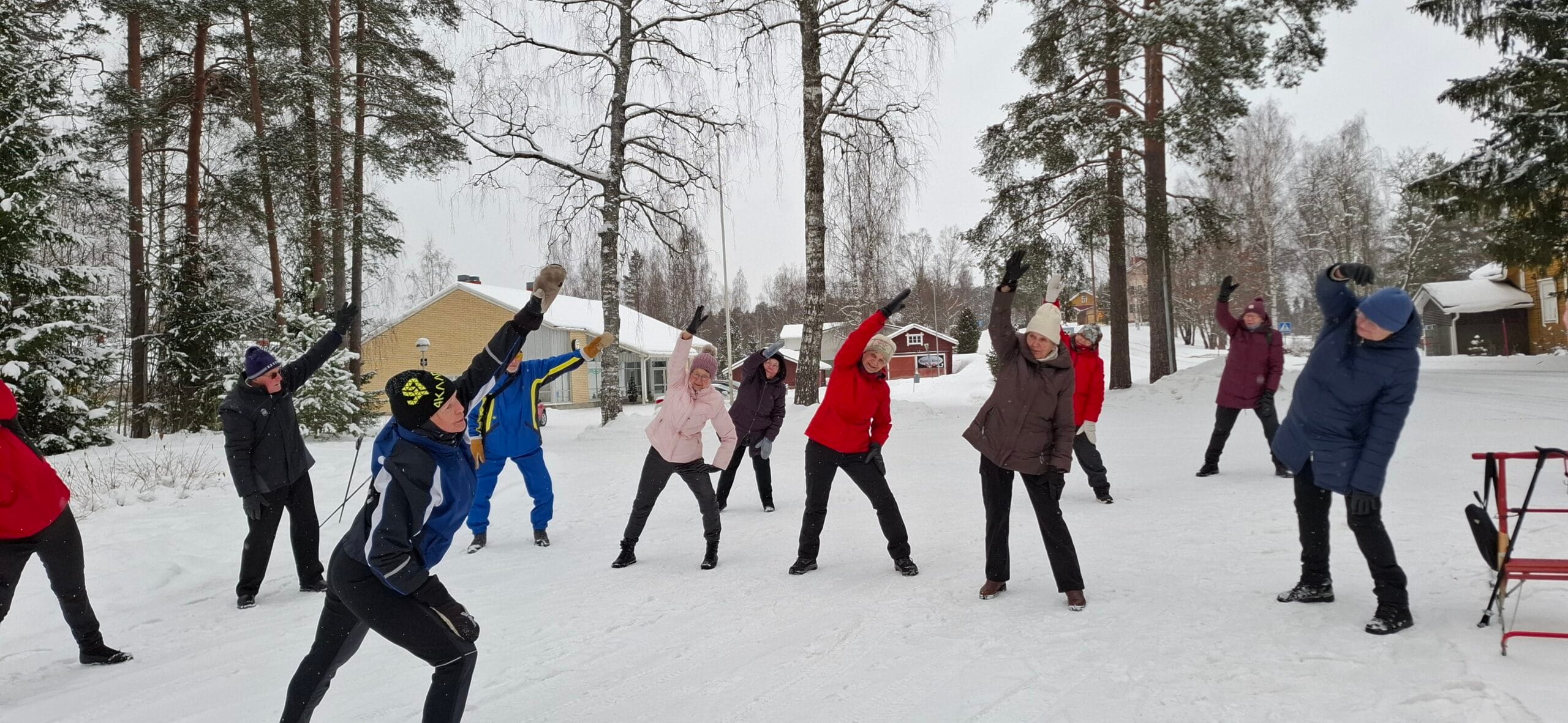 Tänään vietimme Kansallista liikuntapäivää Jäppilän Ahvenaukiolla. Kukin sai hiihtää, kävellä ja potkia potkurilla. Peräti 18 henkeä oli innostunut tulemaan. Reippailun jälkeen saatiin tutustua Birgitan Puistokahvilaan ja siellä nautiskella suussa sulavaa suolaista piirakkaa, sämpylöitä ja makeaa kääretorttua. Olipa mukava aamupäivä tavata ystäviä ja siirtyä hiihtolomalle. Olympialaiset kiinnostivat, sillä juuri alkoi 50 km miesten hiihto. Kaiken varalta grillille oli tehty makkaratulet tunnelmaa luomaan. Kiitos Aija Lapille ja Anja Tenhuselle, jotka olivat suunnitelleet onnistuneen päivän. Katso kuvagalleriasta tapahtuman kuvat.